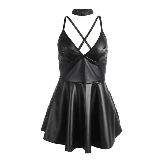 SUBBLIME - 955380 ABITO CON SPALLINE IN PELLE NERA L/XL